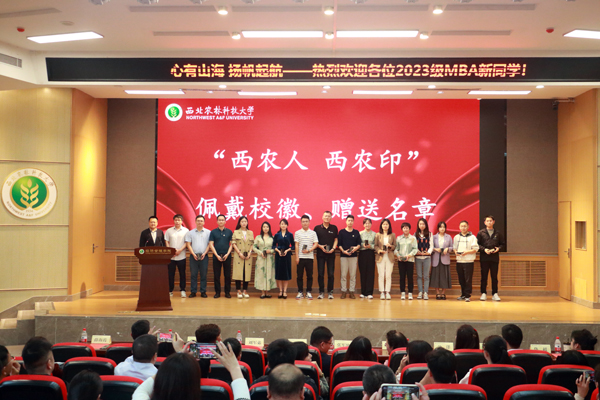 随后,在“西农人、西农印”校徽佩戴、名章赠送环节,威尼斯8846副院长刘军弟为新生代表,佩戴西北农林科技大学校徽、赠送由西农篆刻协会制作的刻有办学理念的姓名印章。一枚校徽,不仅代表着“西农人”的身份,更承载着“诚朴勇毅”的西农精神和西农人的使命与荣光。校徽佩胸前,责任担在肩,在阮盟、刘珍两位同学带领下,全体在场同学庄严宣誓:谨记西农校训,热爱祖国,忠于人民;诚信正直,尊师重道;勤奋学习,积极创新;担当责任,追求卓越;以工商管理之学识,成经世济民之英才!